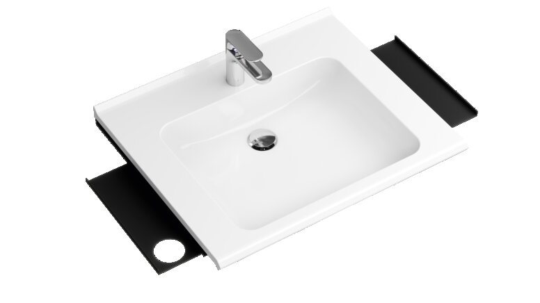 Das Prinzip der Flexibilität setzt sich auch in den Badezimmern fort. Eine praktische Lösung ist der modularer Waschtisch, der flexibel auf die individuellen Bedürfnisse der NutzerInnen reagiert. Er lässt sich schnell und einfach mit adaptiven Zusatzfunktionen wie Ablagen oder einer Handtuchhalterung erweitern und wieder zurückbauen. So finden alle Produkte für die tägliche Routine ihren Platz in greifbarer Nähe und fördern die Praktikabilität des temporären Wohnens.