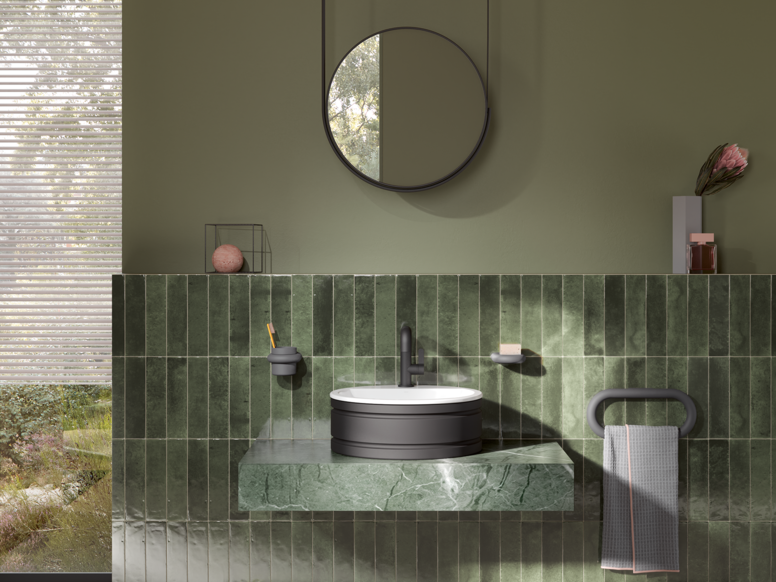 Das innovative Waschtischkonzept erlaubt es, einen adaptiven Haltegriff und ein modulares Ablagesystem direkt am Waschtisch zu integrieren. Es ist in drei attraktiven Pulverbeschichtungsfarben erhältlich, die sich harmonisch in unterschiedliche Badgestaltungen einfügen. Die hochwertige Pulverbeschichtung verleiht dem Waschtisch eine edle Optik, macht die Oberfläche besonders widerstandsfähig und sorgt am Haltegriff für angenehmen Greifkomfort.