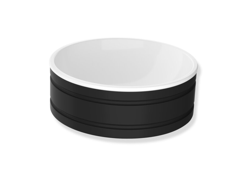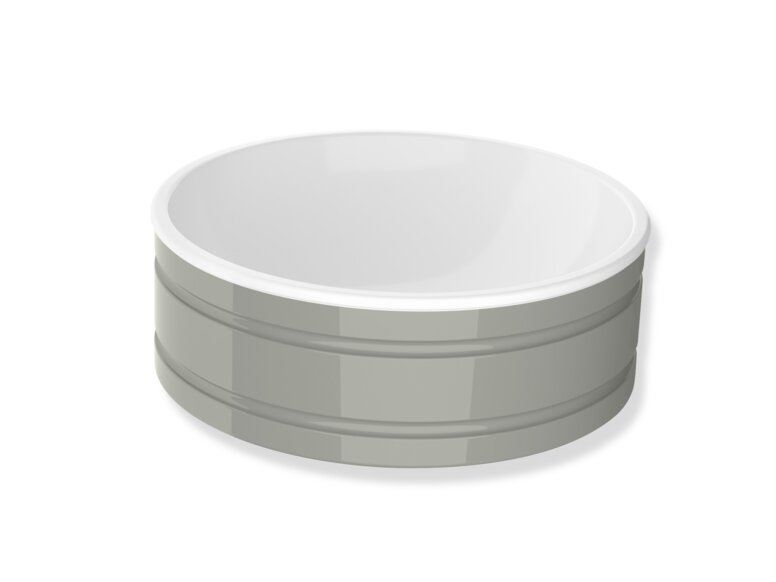 The design's white basin interior can be combined with a glossy white, glossy grey or matt black exterior finish.